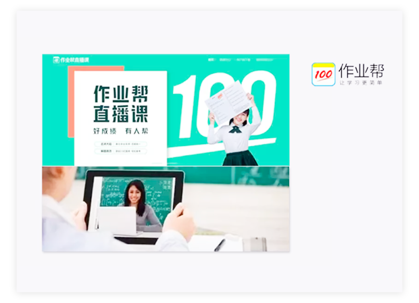 作业帮直播课是作业帮旗下在线直播辅导产品,作业帮直播课已完成约19万个课程,学员超过6200万 ,教师好评率达到95%以上。作业帮直播课是中国女排官方教育品牌,以线上教育为主要互联网营销诉求,借助短视频流量红利,开展全渠道营销,提升品牌知名度。
