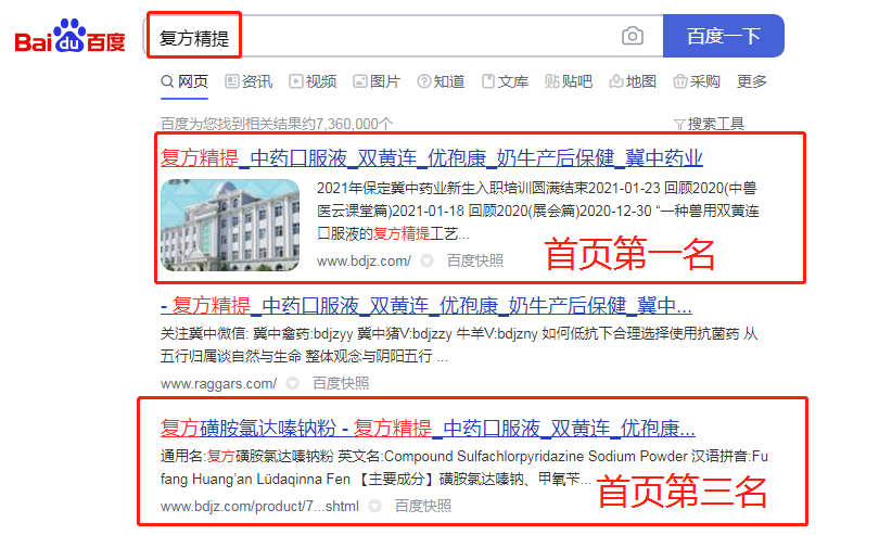 冀中药业和睿新合作之前网站排名效果几乎没有,通过3-4个月时间的持续优化,排名逐渐实现到首页的效果,已经可以通过搜索关键词找到冀中药业的相关内容,并给企业带来客户流量。
